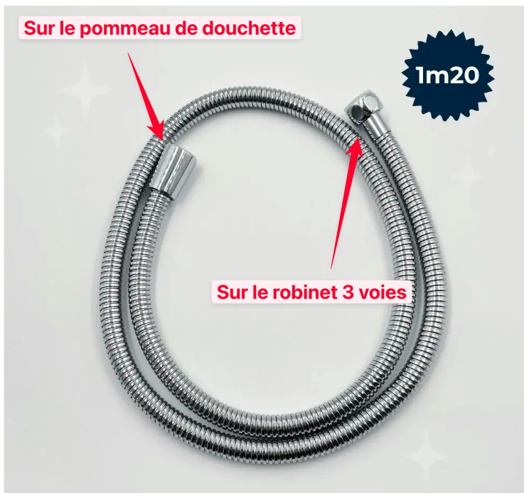 Une fuite sur la douchette Spranus peut venir du pommeau, du flexible ou des raccords.